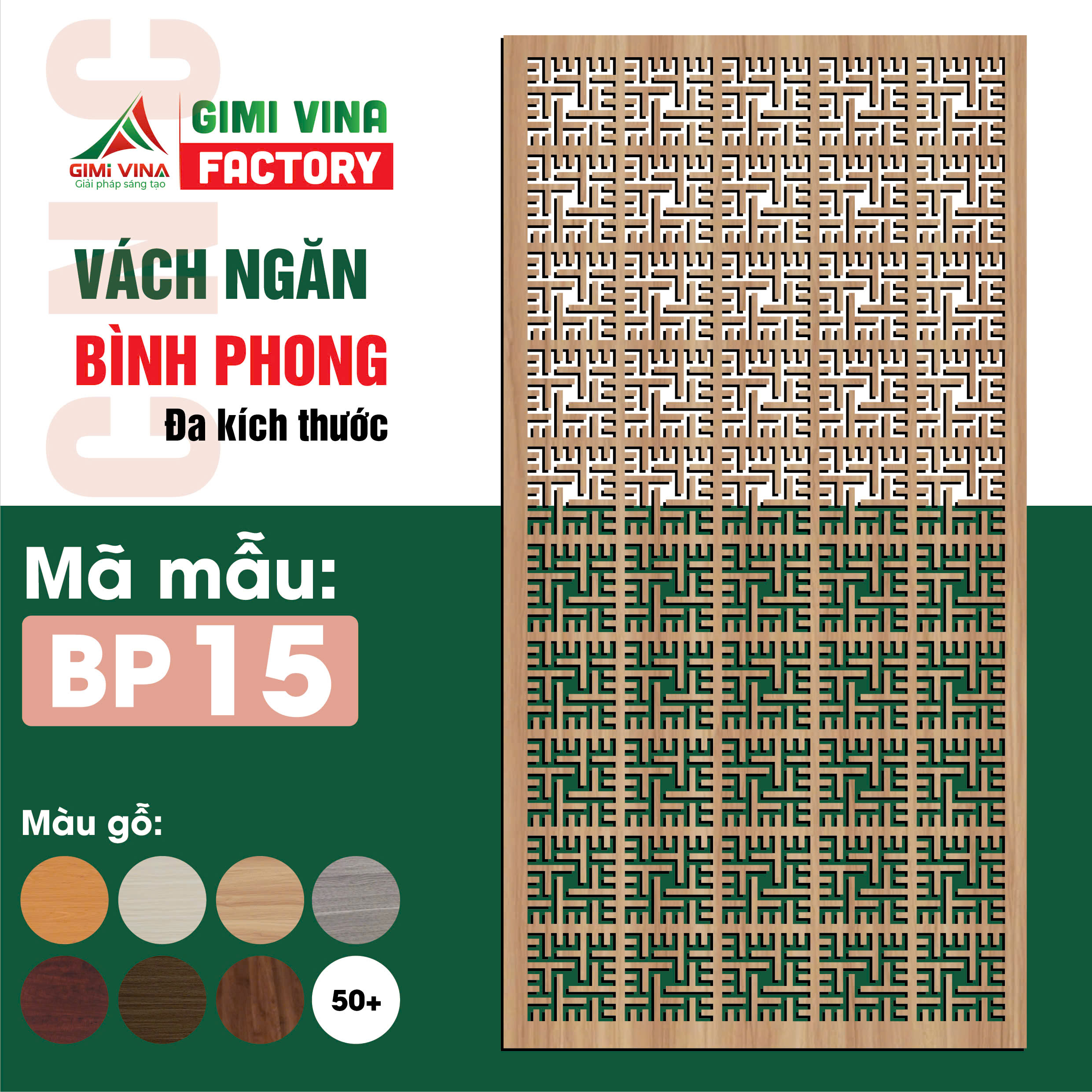 Bình phong vách ngăn gỗ BP15 sản xuất trực tiếp bởi Gimi Factory, với công nghệ cắt CNC hiện đại tạo sự sắc nét từng chi tiết. Gỗ HDF chống ẩm – chống mối mọt có độ bền vượt trội.