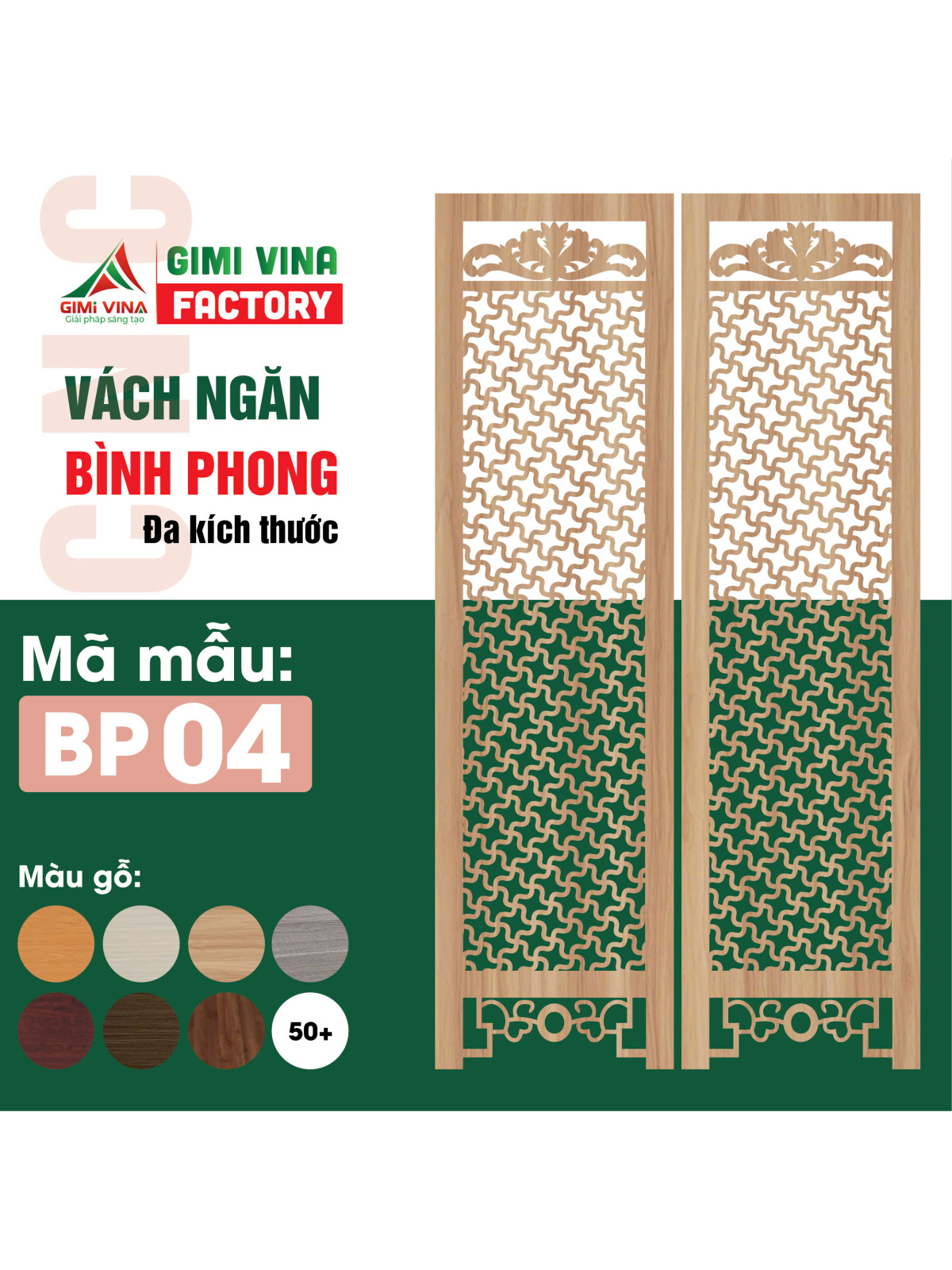 Vách ngăn bình phong bằng gỗ cao cấp BP04 sản phẩm làm từ gỗ HDF gia công bằng máy CNC chống ẩm, chống mối mọt và thân thiện môi trường.